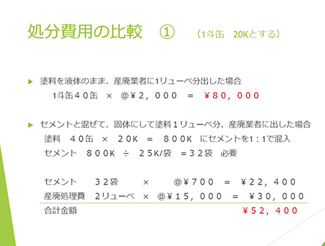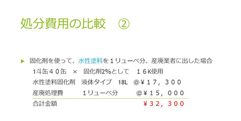| 水性塗料をそのまま産廃として処理 | 水性塗料固化剤で処理 | ||